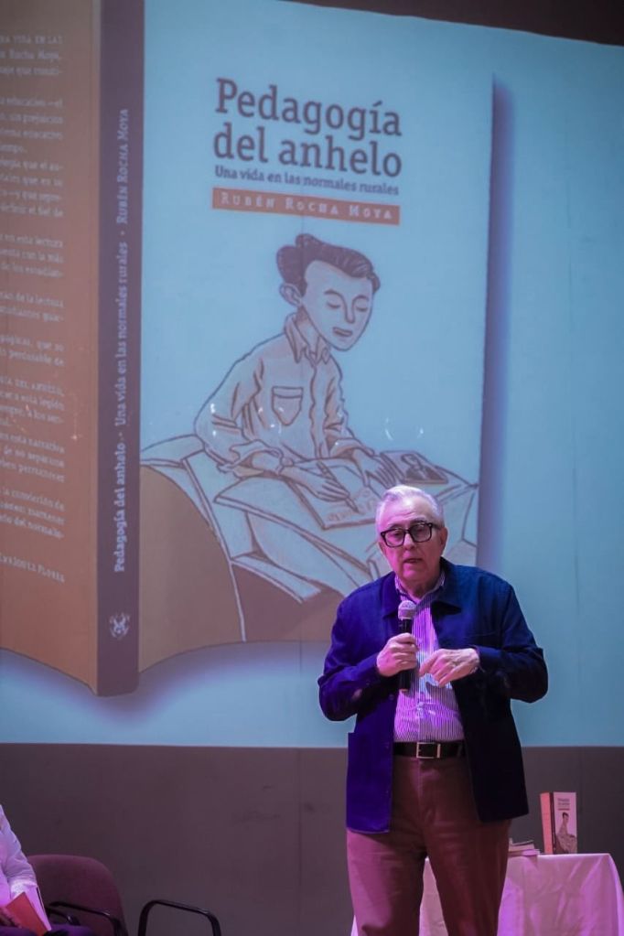 “El libro este habla de todas las normales, de todas, aquí está algún detalle me refiero a ellas, porque las conocí. Pero, por supuesto, yo relato la vida en las normales rurales en mi experiencia en El Quinto, porque aquí estuve seis años”, comentó el Dr. Rocha Moya, subrayando que su publicación puede ser de utilidad para complementar una investigación.