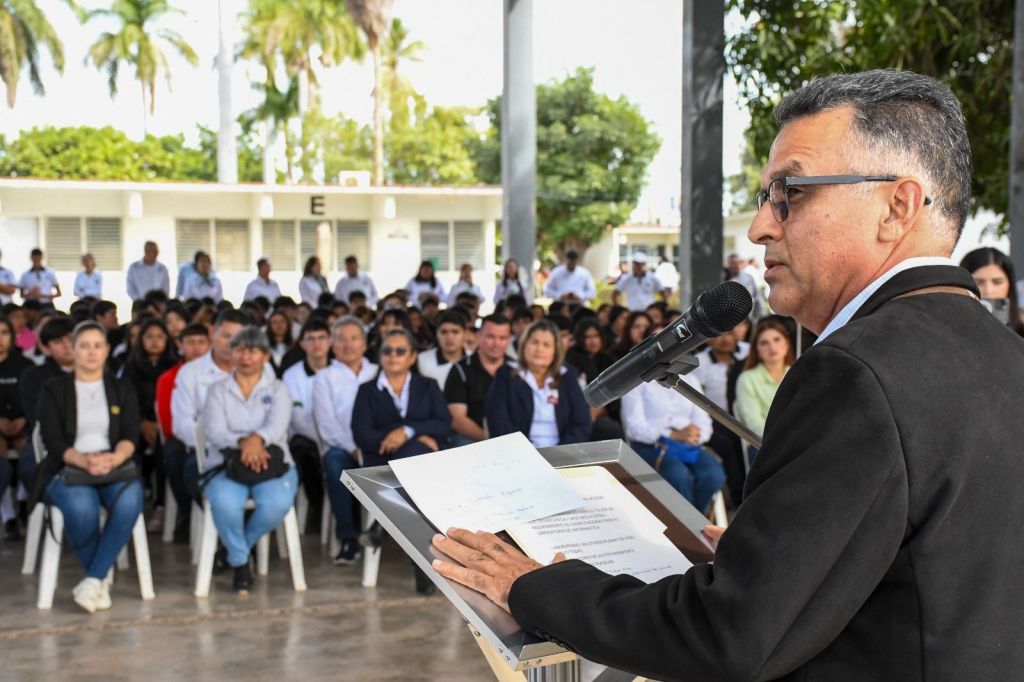 Posteriormente, la alumna Leslie Nataly Morales Moreno, representante de las y los alumnos del plantel Conalep Guasave, dedicó unas palabras de agradecimiento a las autoridades educativas.