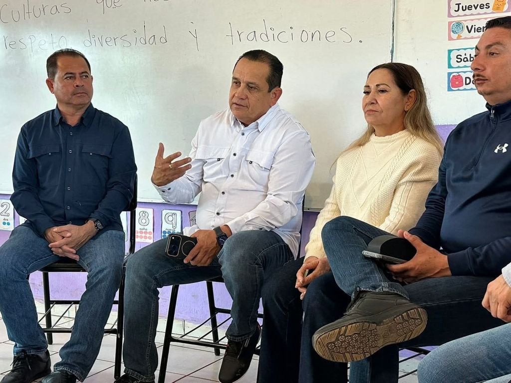 Acompañaron al Secretario: Gladys Campos, Directora del plantel; María de la Luz Espinoza Araujo, Supervisora escolar; Julio César Cota, Delegado D-I-57; Guillermo Valdez Reyes, Coordinador sindical de Sinaloa municipio; y Cristian Josué Rodríguez López, Coordinador sindical de COBAES.