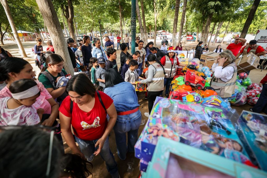 Además de los juguetes, regalos, lonchecitos y dulces, a las familias se les hizo entrega de apoyos invernales, los cuales consisten en asistencia alimentaria, cobijas y catres.