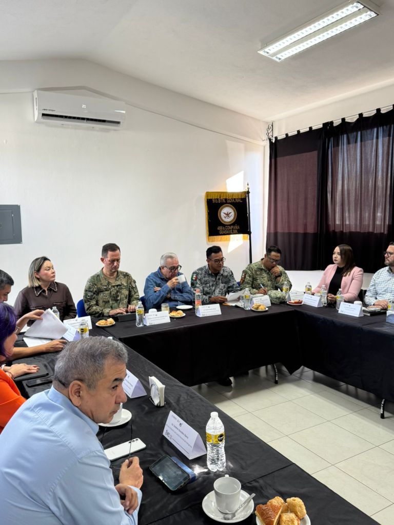 Guasave, Sinaloa, a 02 de Diciembre de 2025. Bajo un formato regional, esta mañana se realizó sesión de la Mesa de la Coordinación Estatal para la Construcción de la Paz, encabezada por el Gobernador Rubén Rocha Moya, teniendo como sede las instalaciones del noveno batallón de la Guardia Nacional en esta ciudad.