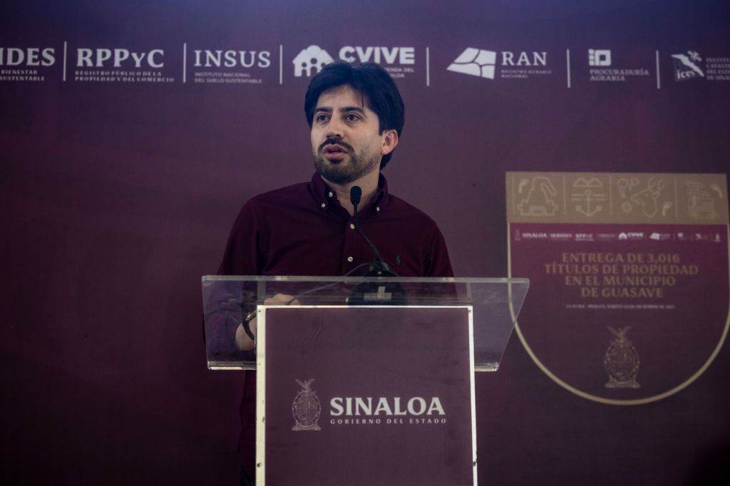 “Me da mucho gusto estar hoy aquí acompañando al gobernador del estado, al doctor Rubén Rocha Moya, en un evento que tiene un profundo significado para las familias de Guasave, la entrega de 3 mil 16 nuevos títulos de propiedad”, dijo.