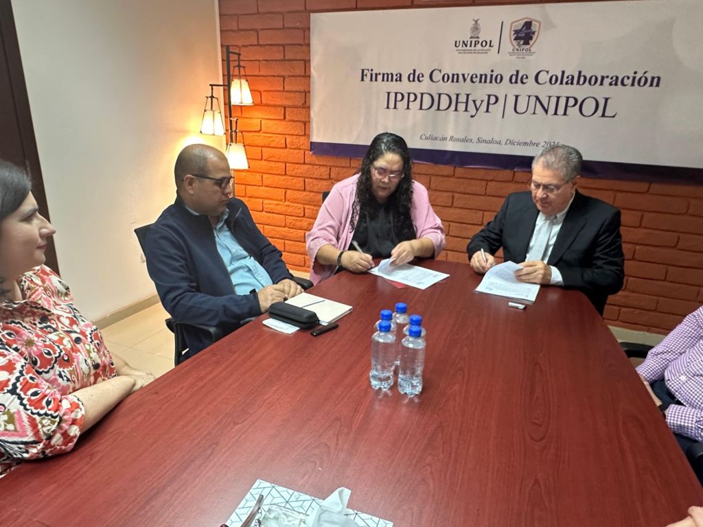 Culiacán Rosales, Sinaloa, a 5 de diciembre de 2025.- Al continuar las actividades de conmemoración por el Cuarto Aniversario de la Universidad de la Policía (Unipol), la Casa de Estudios signó un convenio de Colaboración con el Instituto para la Protección de Personas Defensoras de Derechos Humanos y Periodistas.