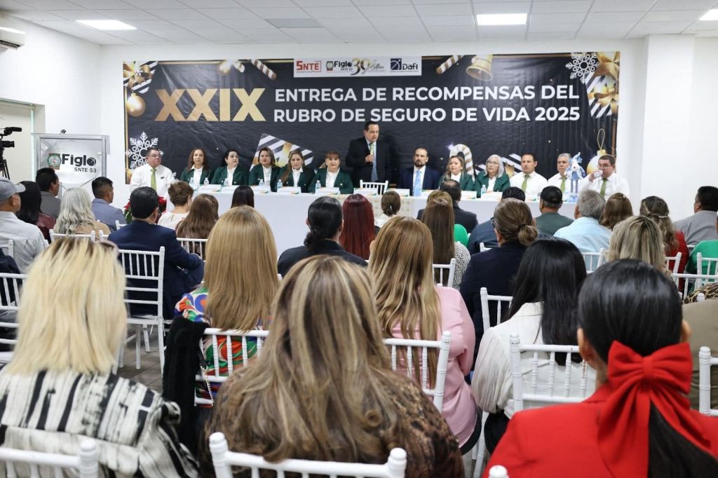 El Prof. Ricardo Madrid Uriarte, Secretario General de la Sección 53 del SNTE y Presidente del Comité Técnico de Figlosnte 53, encabezó la XXIX entrega de Recompensas del rubro de Seguro de Vida 2025, beneficiando a 149 Trabajadores de la Educación de la Sección 53 del SNTE con estímulos económicos por más de $3 millones de pesos.