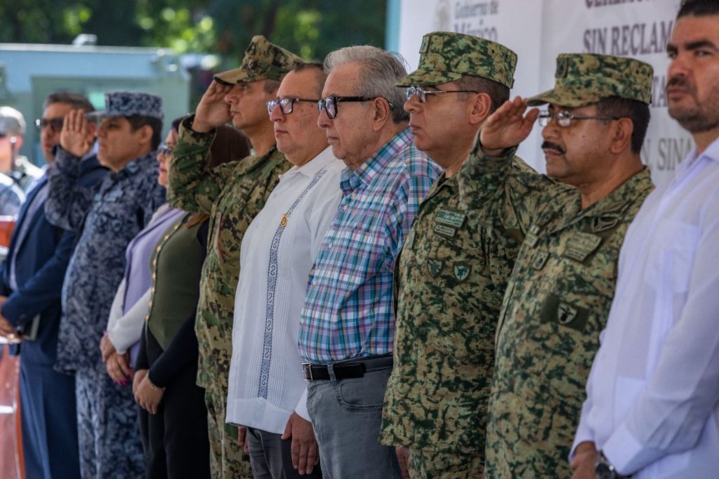 Acompañaron al Gobernador Rocha, Jesús Iván Chávez, presidente del Supremo Tribunal de Justicia; Rodolfo Valenzuela Sánchez, presidente de la mesa directiva del Congreso del Estado; Carlos Ernesto Damiano, capitán de la Cuarta Región Naval; Yeraldine Bonilla Valverde, secretaria General de Gobierno; Juan de Dios Gámez, alcalde de Culiacán; Claudia Zulema Sánchez, Fiscal General del Estado; María Martina Salazar, secretaria técnica de la Coordinación Estatal para la Construcción de la Paz; Humberto Cerón Martínez, de la secretaría de Seguridad Pública; Ramiro Ortega Carrasco, de la Guardia Nacional; Jesús Manuel Castro, comandante de la Base Aérea Militar n10; Aurelio Roy Navarrete, director de Protección Civil Estatal, así como alumnos y personal docente de la escuela primaria Ramón F. Iturbe y tropas castrenses.