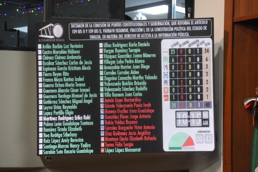 Culiacán, Sinaloa. A 18 de diciembre de 2025.- Por mayoría de votos, el Congreso de Sinaloa aprobó este jueves una reforma a la Constitución del estado que contempla la extinción de la Comisión Estatal para el Acceso a la Información Pública (CEAIP), y que sus funciones pasen a las contralorías de los tres Poderes del Estado optimizando el uso de recursos públicos.