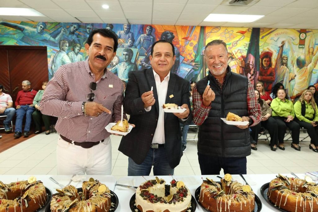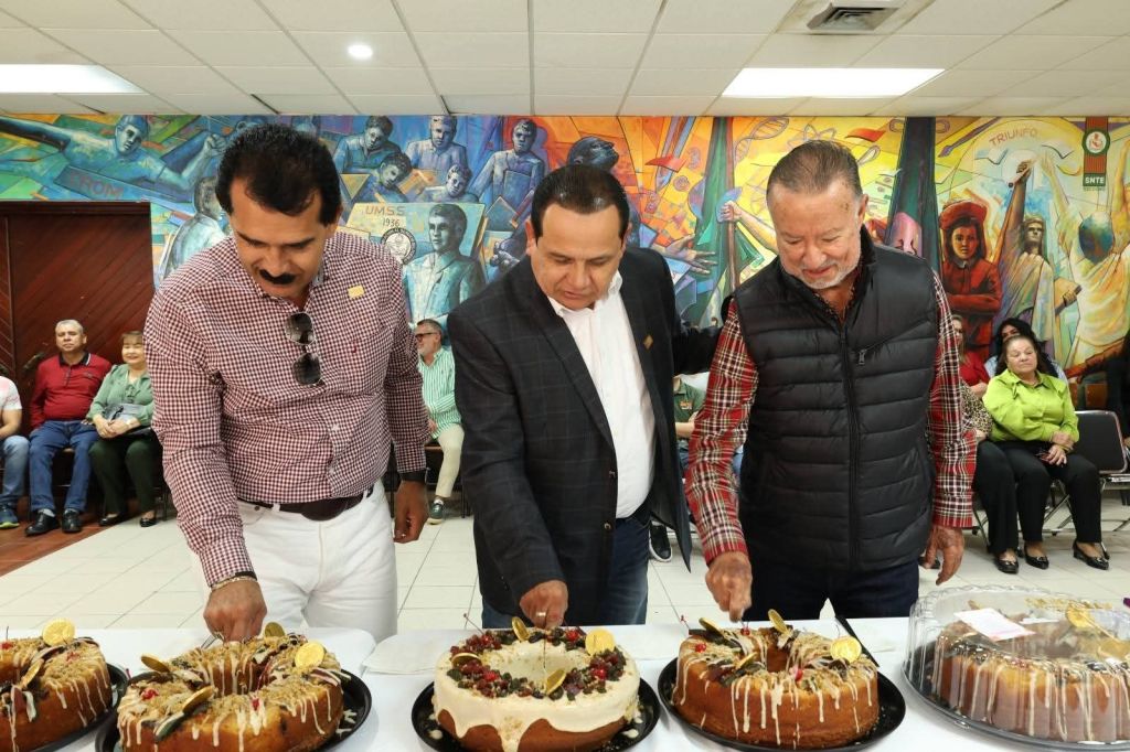 El líder de la Sección 53 del SNTE, Prof. Ricardo Madrid Uriarte, junto con el Presidente Estatal de ENCIMA A.C. y ex Secretario, Prof. Daniel Amador Gaxiola, el ex Secretario, Prof. Fernando Sandoval Angulo, la Directiva Seccional Sindical y el Personal de Apoyo y Asistencia a la Educación, celebró la tradicional Partida de Rosca de Reyes en las oficinas centrales. El evento fortaleció los lazos de unidad y compañerismo, fomentando la convivencia y deseando un próspero 2026 para los agremiados.