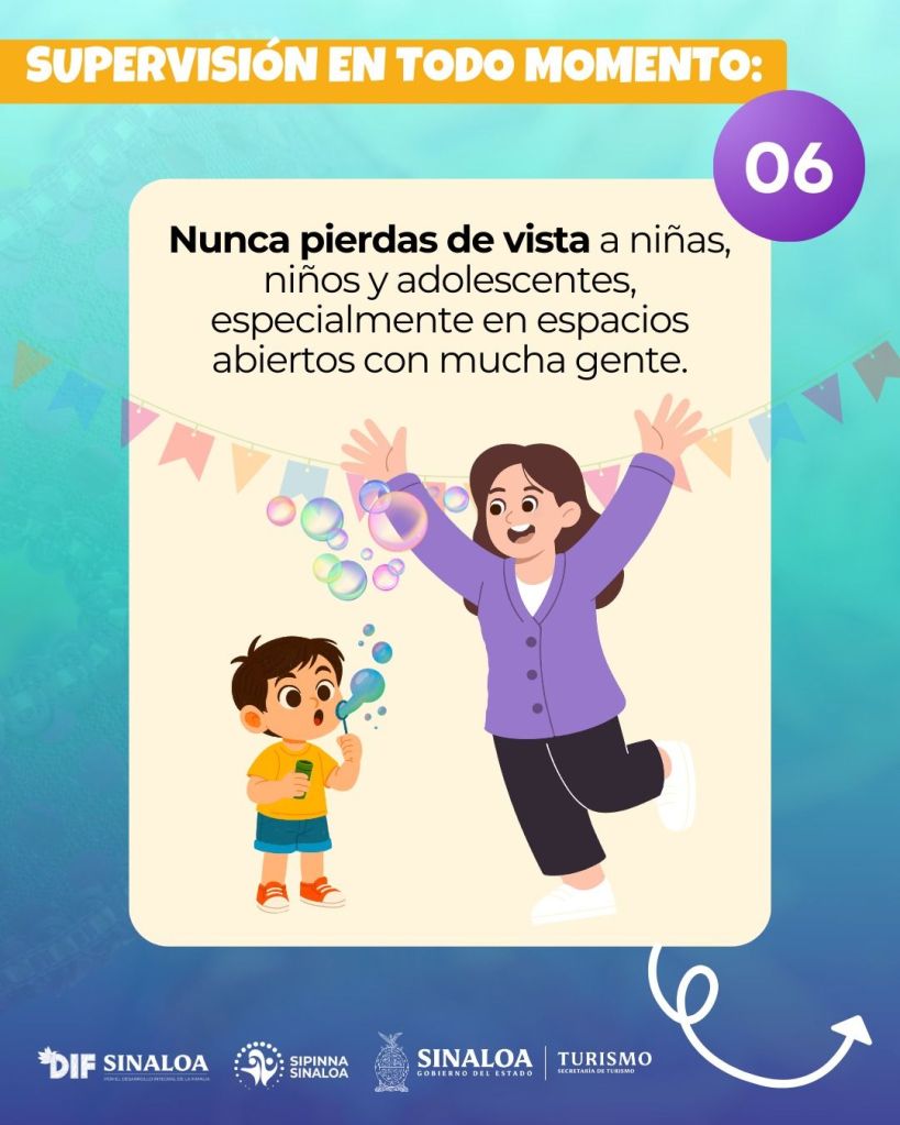 El Gobierno del Estado, a través de DIF Sinaloa, la Secretaría de Turismo y la Secretaría Ejecutiva del SIPINNA solicitan que se priorice el enfoque de derechos de niñez y adolescencia.