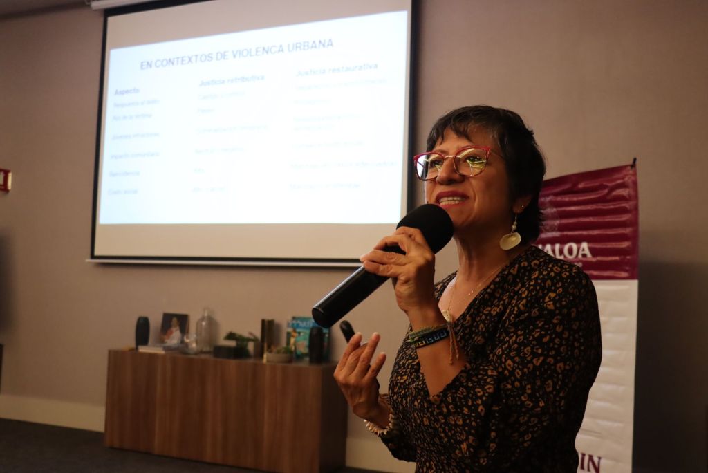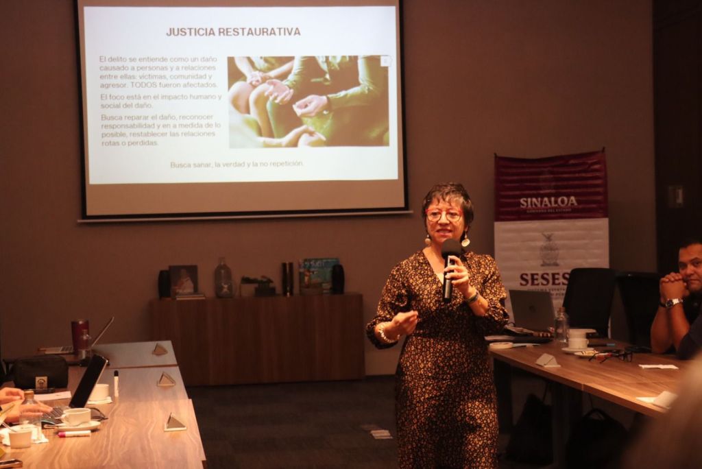 Thania Karina Parra, titular del CEPREVSIN y organizadora del encuentro, destacó que el objetivo fue acercar a los medios de comunicación con este nuevo concepto para la aplicación de la justicia, que es componente clave de la estrategia de seguridad a nivel nacional y también de los principales proyectos que se están impulsando en materia de prevención por parte de la federación, los cuales se busca replicar en el estado de Sinaloa.