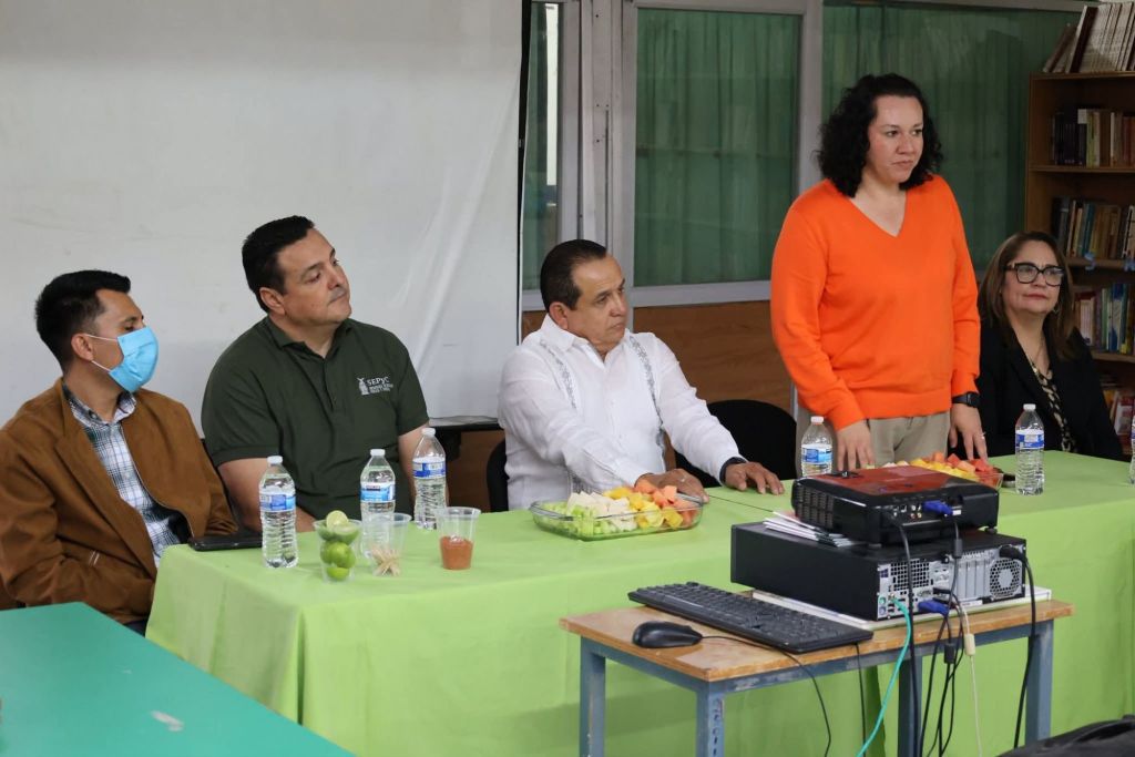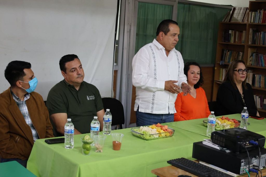 El Delegado Rodrigo Reyna López y el Director del plantel, Agustín Almodóvar Cepeda, dieron la bienvenida al dirigente y a parte de su Directiva Seccional Sindical.