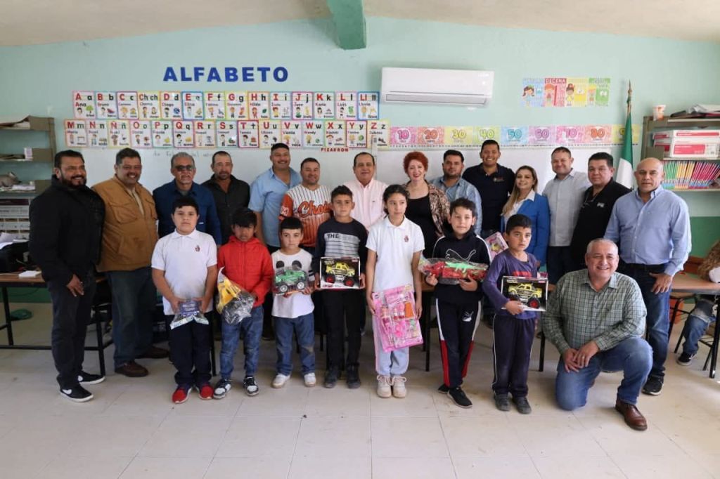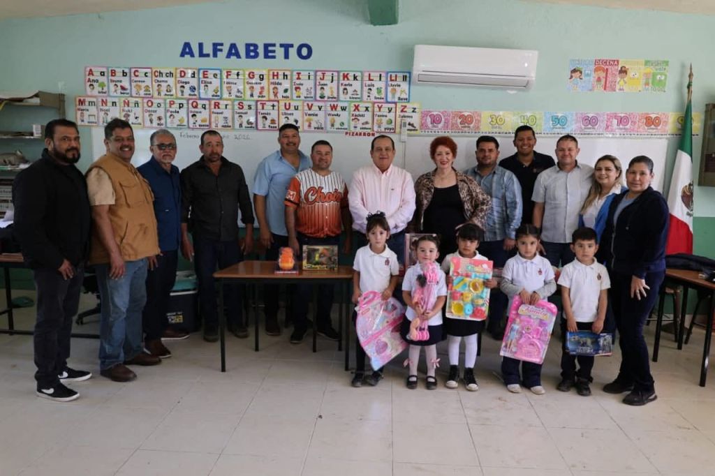 El Mtro. Arnoldo Tejada Burgos, director del plantel, dio la bienvenida al dirigente estatal y agradeció la entrega de juguetes a las niñas y niños de la comunidad.
