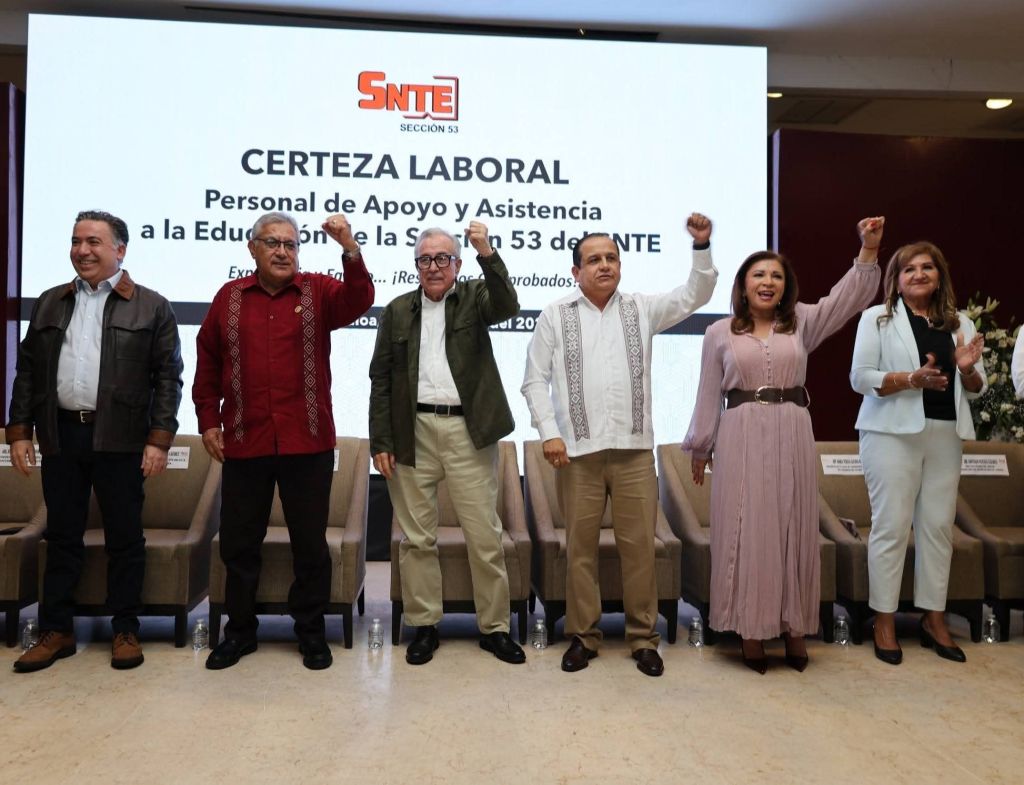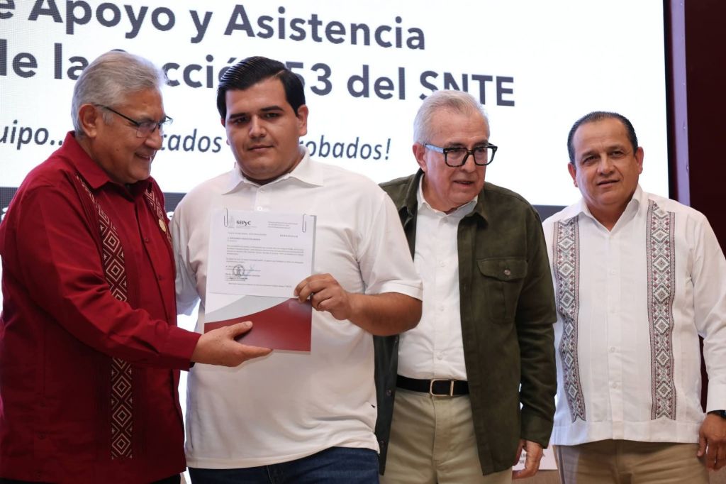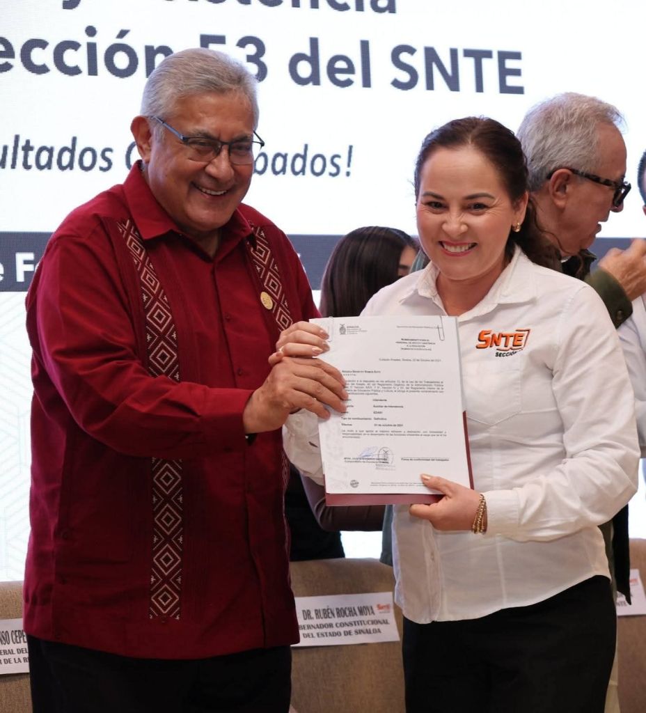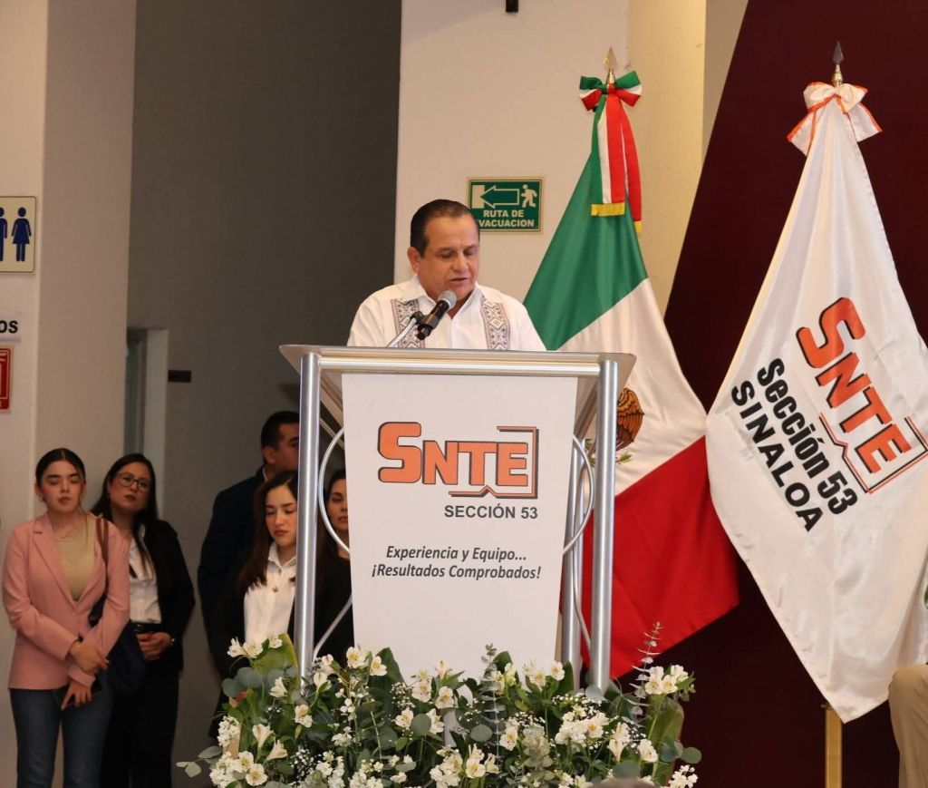 Con la distinguida presencia del Gobernador del estado, Dr. Rubén Rocha Moya, y del Secretario General del CEN del SNTE, Mtro. Alfonso Cepeda Salas, el Secretario General de la Sección 53 del SNTE, Prof. Ricardo Madrid Uriarte, presidió la entrega de 1058 memorándums de base, que dan certeza laboral a personal de apoyo y asistencia a la educación. La Sección 53 del SNTE refrenda su compromiso con una educación pública sólida, justa y con mejores condiciones para quienes la hacen posible.