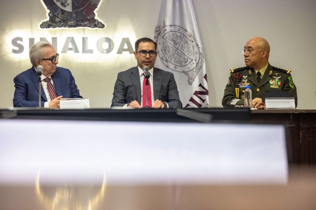 “Y aquí en el estado de Sinaloa se toma como ejemplo, y hay muchas formas de comprobarlo, y los hechos son los que dan fe, dan evidencia del avance que se tiene, cada uno de nosotros desde su particular agenda aporta un capital importantísimo para el objetivo que tenemos; seguiremos trabajando hombro con hombro, codo a codo, no sólo con los integrantes de las Fuerzas Armadas, sino con todos los integrantes de la Mesa de Seguridad y del gabinete estatal, así continuaremos avanzando en el encargo que tenemos en beneficio de todas las y los sinaloenses”, dijo el general.