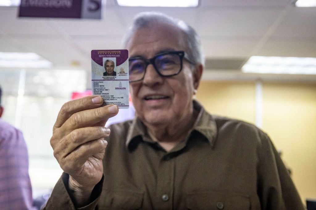 Culiacán, Sinaloa 17 de marzo de 2026. Invitando a las y los sinaloenses a tramitar la nueva licencia permanente, el gobernador Rubén Rocha Moya, acudió personalmente a las oficinas de Vialidad y Transportes, en la Unidad de Servicios Estatales, para ser uno de los primeros ciudadanos en tramitar su licencia.