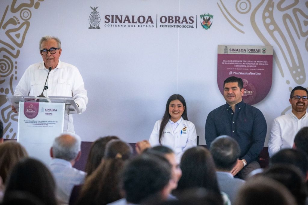 Guasave, Sinaloa, a 19 de marzo de 2026. Para cumplir con el compromiso hecho con la comunidad universitaria en Guasave, el gobernador Rubén Rocha Moya inauguró la Facultad de Medicina de la Universidad Autónoma de Sinaloa en la Ciudad Universitaria de Guasave, magna obra de más de 51 millones de pesos de inversión que fue posible gracias al Plan Sinaloa para la Reactivación Económica y Social.