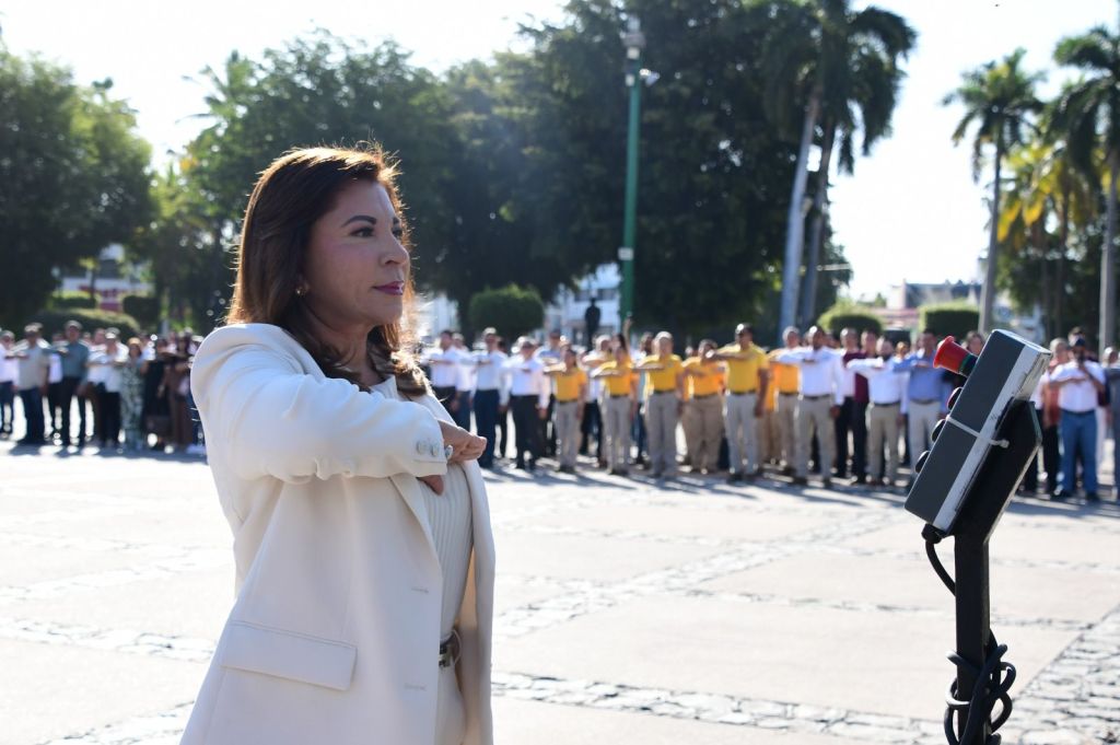 El acto inició en la Plaza Cívica de Palacio de Gobierno con el izamiento de bandera a media asta y los honores de ordenanza correspondientes, donde los asistentes entonaron el Himno Nacional Mexicano.