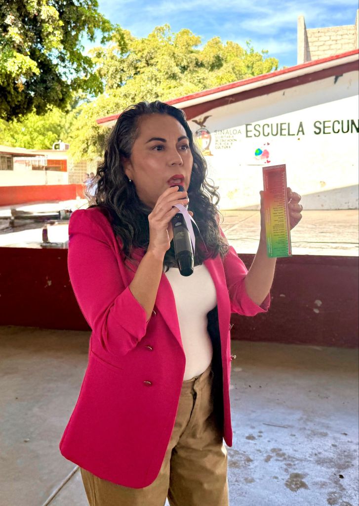 Villa Juárez, Navolato, Sinaloa. Como parte de las acciones de prevención y sensibilización sobre la violencia contra las mujeres, CEPAVIF llevó a cabo una charla sobre el Violentómetro, así como la instalación de material visual a gran escala sobre esta herramienta para una mejor alcance, en la Escuela Secundaria Técnica No. 51 Villa Benito Juárez, ubicada en la sindicatura de Villa Juárez, municipio de Navolato.