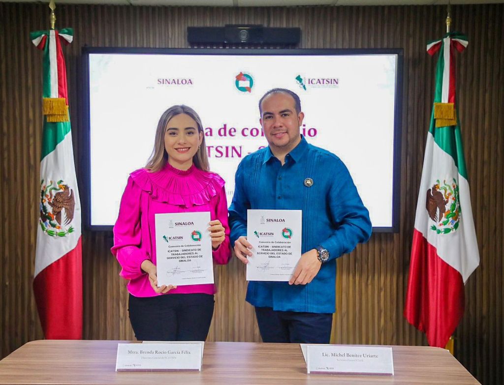 La signa del acuerdo fue encabezada por la Directora General de ICATSIN, Brenda García Félix, y el Secretario General del STASE, Michel Benítez Uriarte, quienes coincidieron en la importancia de trabajar de manera coordinada para garantizar mejores oportunidades y certeza jurídica para las y los trabajadores.