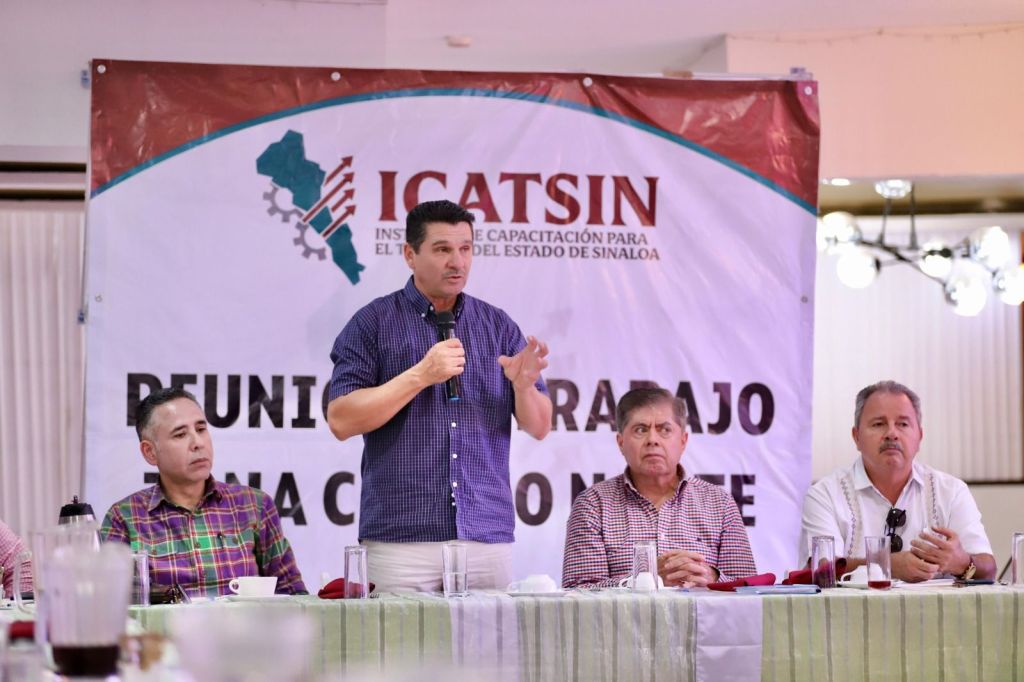 Guasave, Sinaloa a 13 de agosto de 2025.- Para fortalecer la vinculación con los sectores productivos, el Instituto de Capacitación para el Trabajo del Estado de Sinaloa (ICATSIN), dirigido por su Director General, Armando Camacho Aguilar, sostuvo una reunión estratégica con representantes empresariales y organismos camarales de la zona centro-norte, que abarca los municipios de Sinaloa, Guasave, Badiraguato, Mocorito, Salvador Alvarado y Angostura, acompañado de los directivos de los planteles de la zona centro-norte.