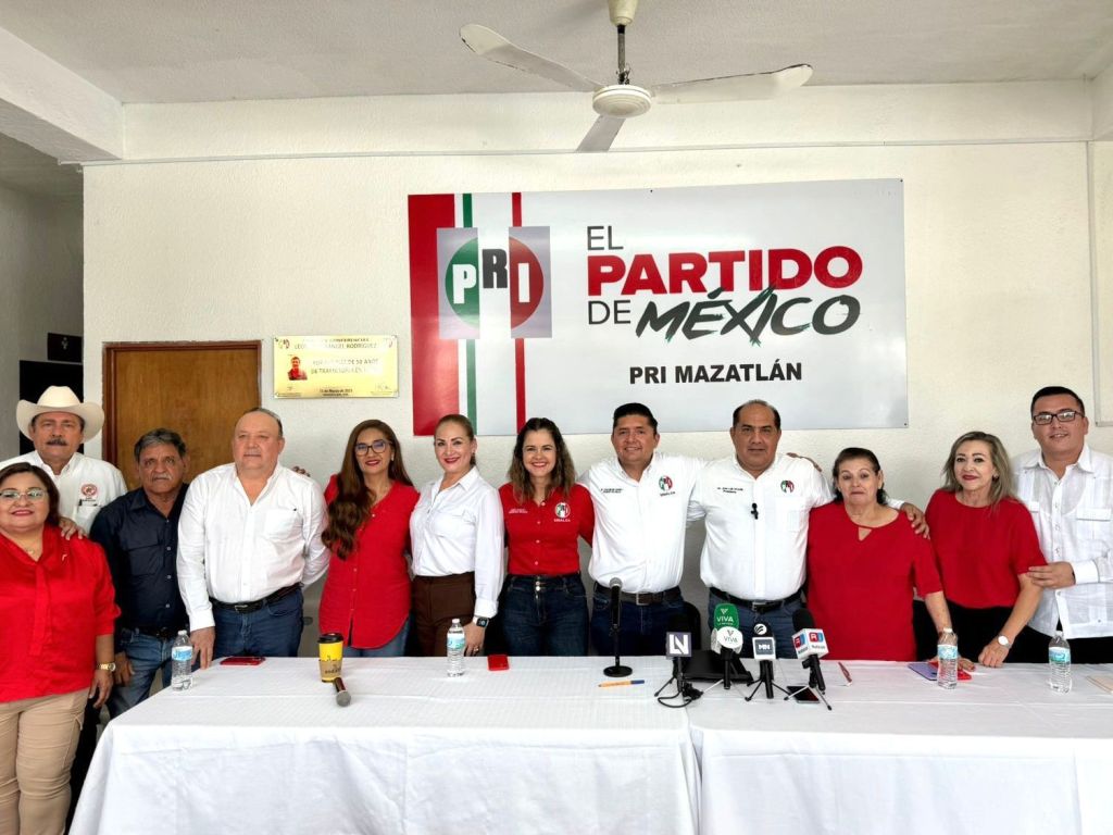 La dirigencia estatal del PRI, sostiene conferencia de prensa en el puerto de Mazatlán.