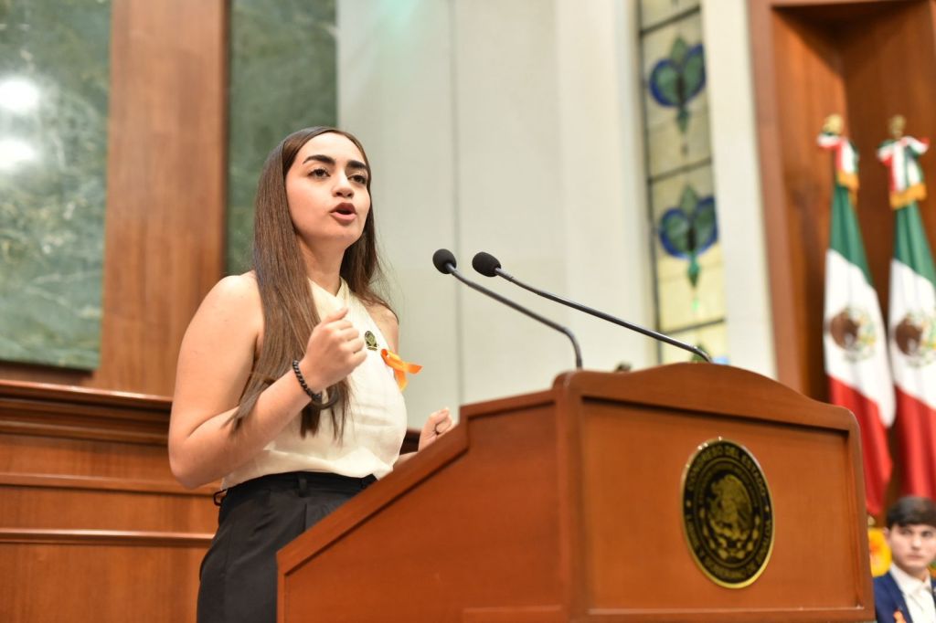 La diputada María Teresa Guerra Ochoa, presidenta de la Junta de Coordinación Política del Congreso del Estado exhortó a las 40 diputadas y diputados del Parlamento Juvenil 07 de Abril 2025 a buscar la fortaleza emocional y una autonomía económica, así como a tomar sus propias decisiones y a agarrar fuerzas cuando estas no hayan sido las mejores.
