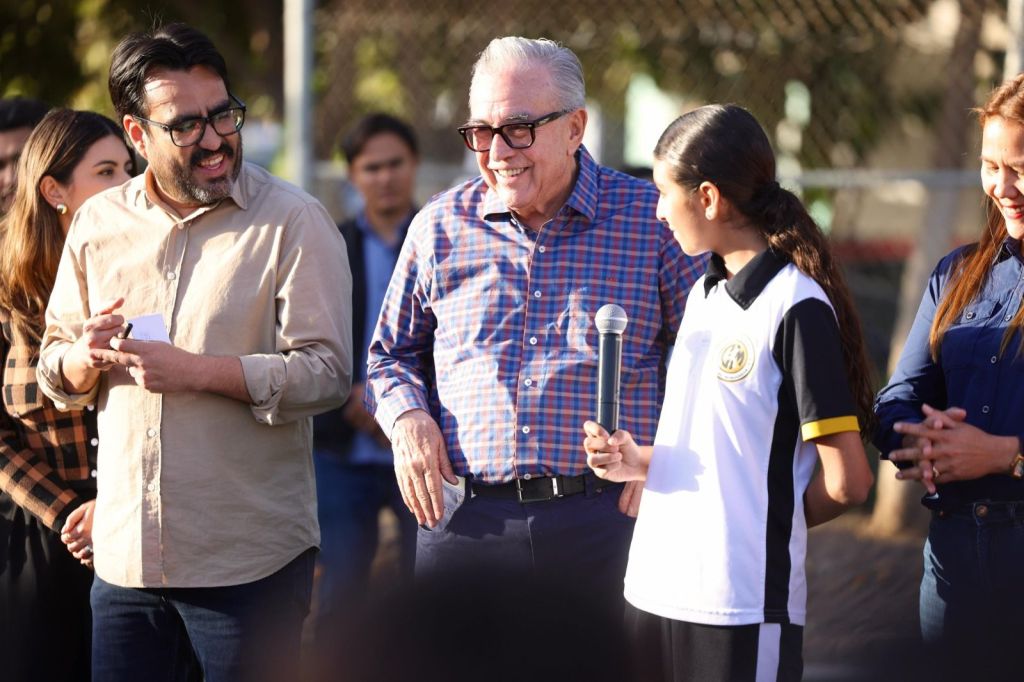 El mandatario estatal y el alcalde Juan de Dios Gámez entregaron la rehabilitación del campo de futbol, baños y 3 obras de pavimentación con una inversión superior a los 4.3 millones de pesos.