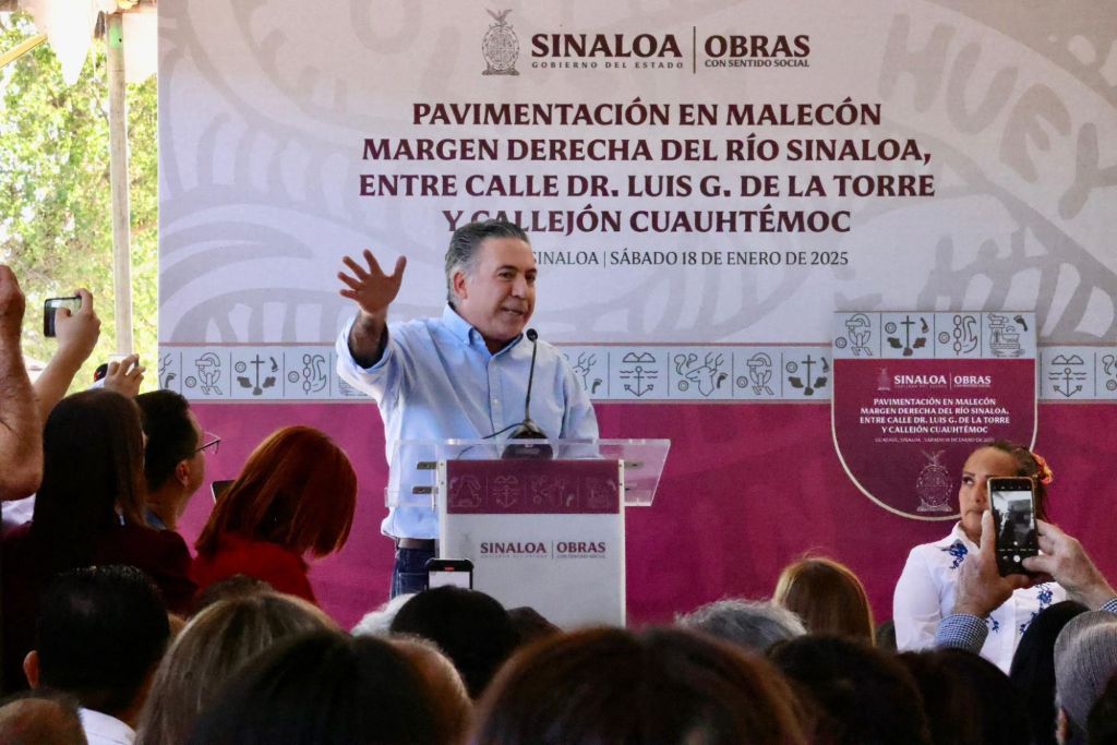 Guasave, Sinaloa, a 18 de enero de 2025.- Al inaugurar la prolongación del malecón de Guasave, situado por la margen derecha del río Sinaloa, el gobernador Rubén Rocha Moya anunció un programa de mejoramiento de las viviendas que se encuentran ubicadas sobre esta vialidad, a fin de que sus moradores no sean desplazados al verse en la necesidad de vender sus propiedades ante el auge comercial que seguramente se detonará en esta zona de la ciudad, obra que además servirá como una barrera de contención contra las inundaciones generadas por la crecida del río.