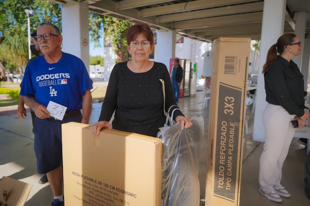 Guamúchil, municipio de Salvador Alvarado, Sinaloa, 12 de enero de 2026. Como parte de las acciones para fortalecer el comercio popular y la economía local, el Gobierno del Estado de Sinaloa a través de la secretaría de Economía, realizó en Guamúchil la entrega de equipamiento del programa Nuestro Tianguis, beneficiando a 50 tianguistas con un total de 150 artículos, que permitirán mejorar sus condiciones de trabajo y fortalecer su actividad comercial.